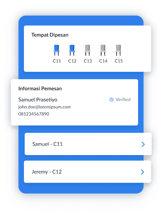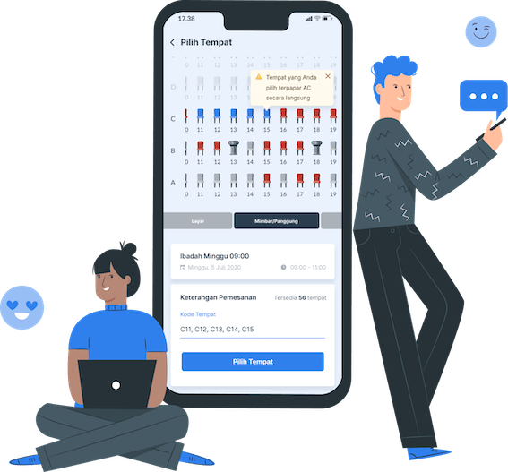 Jemaat bisa memilih kursi saat pendaftaran ibadah. Tidak ingin kursi dekat AC? pilih kursi lain. Experience baru dalam beribadah.